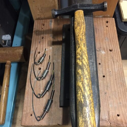 Completely hand wrought by Lisa in her Toronto Studio. Made from sterling silver, copper and brass wire. Each one is carefully handmade, one at a time, and therefore are all slightly different. Each pin is approximately 4.5″ in length, 1.5″ wide, and the biggest coil in oxidized sterling is about 1/2″ in diameter. Each pin weighs approximately 42 grams, which is another reason why it needs to be used on heavier weight yarn projects, so it can support the weight without damaging the fibre. Lisa makes each of these pins with the same attention to detail, so they are all relatively the same, just separated by the small differences that come with the individual creating process.