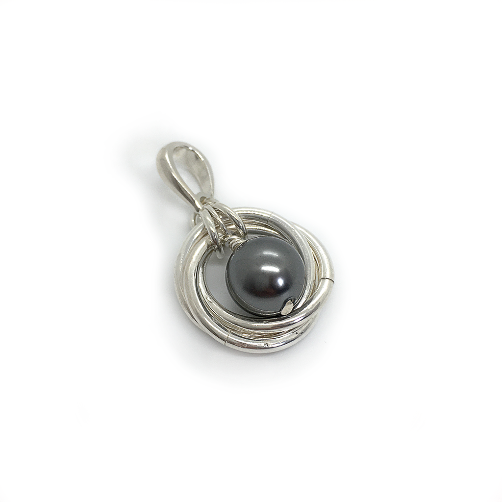 Sterling silver and Swarovski crystal pearl. The Jackie O Pearl Pendant fits on all of Lisa’s smaller profile necklaces, such as Solo, Small Twist and Jen’s Braid. Shown in the Swarovski crystal platinum pearl colour on the Solo Necklace. Price is for pendant only. Lisa sells her necklaces and pendants separately. Pendant also comes in cream, Platinum & Gray Swarovski pearl colours. Exact match to either the Jackie O Pearl Earrings or the Jackie O Pearl Studs.