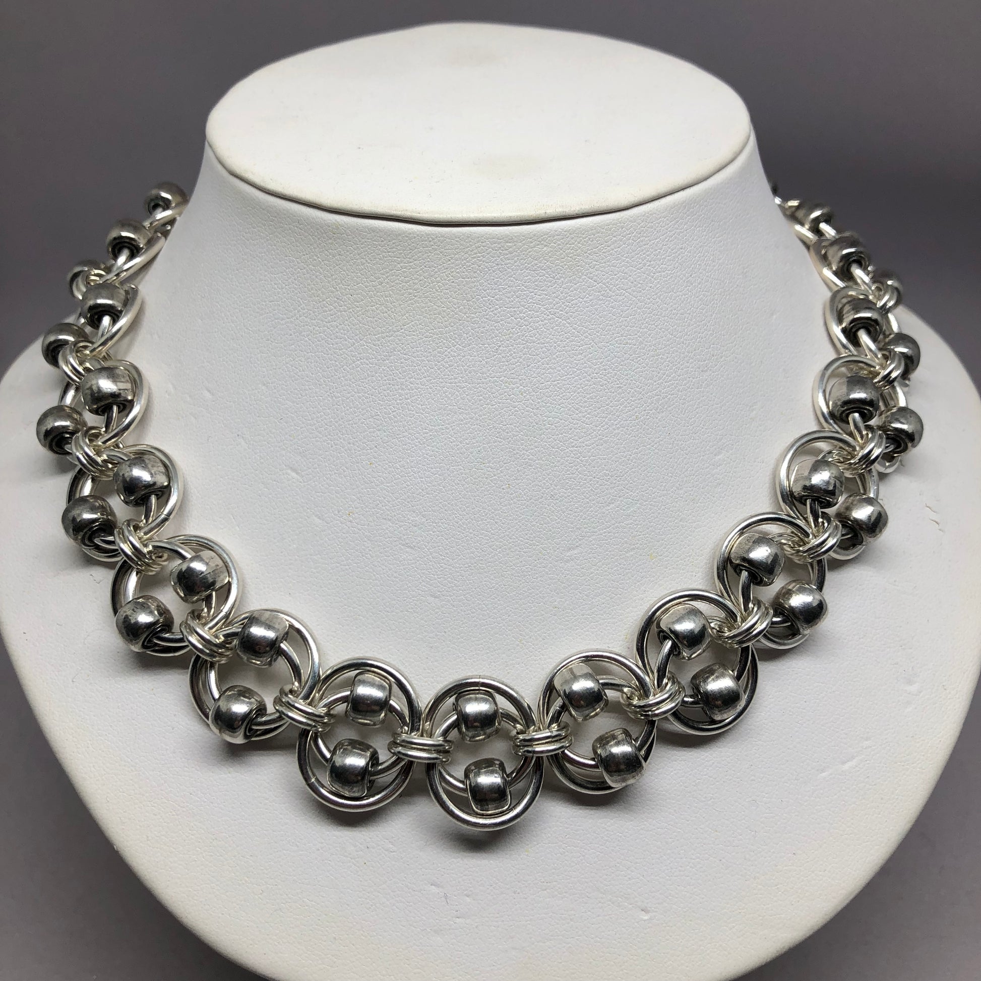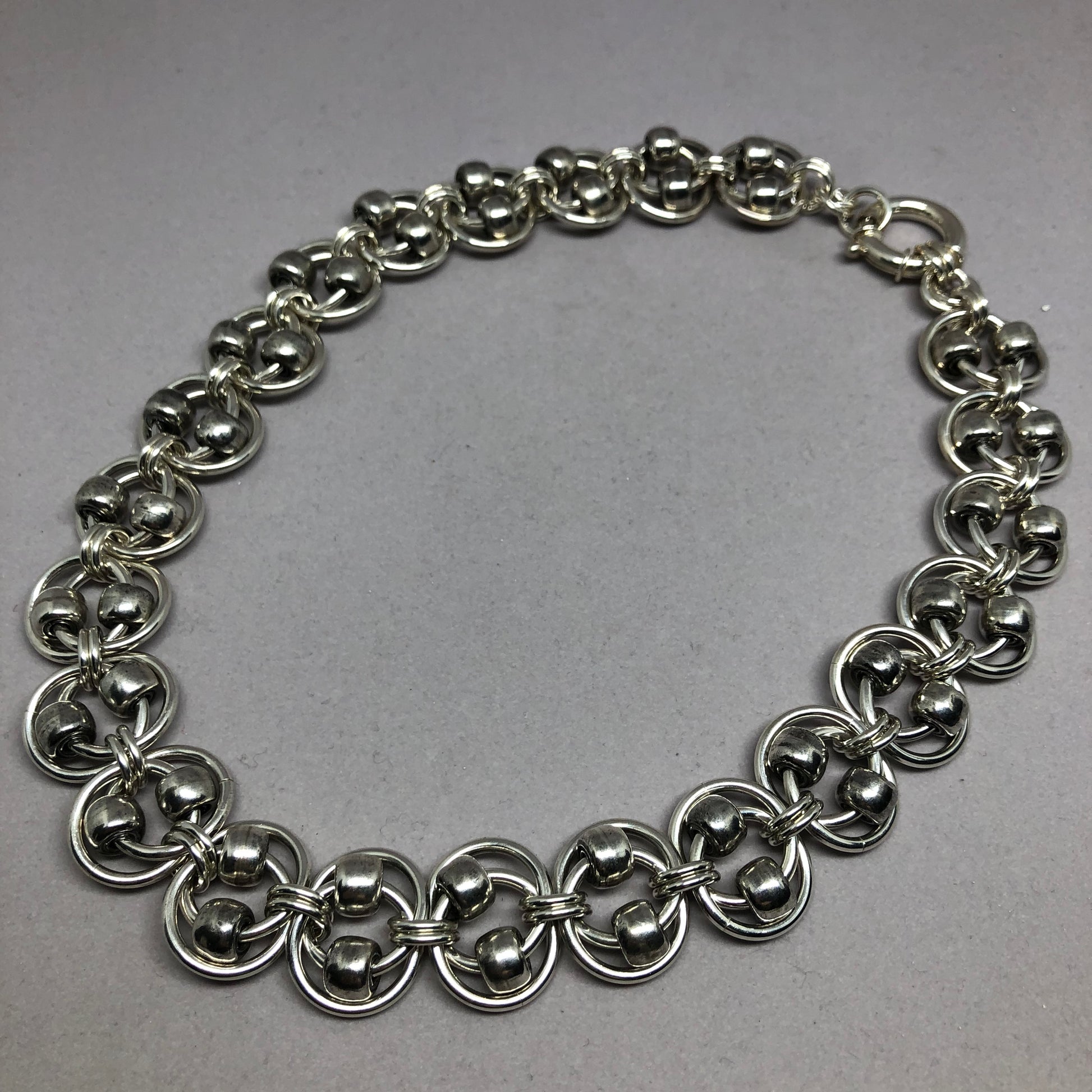 Sterling silver. This necklace can be dressed up or down. As comfortable worn with a white t-shirt and jeans, as it is with your favourite black dress. Go from day to night easily. You will do a wardrobe change, but the jewellery can stay! Available in several length options. Exact match to the Metro Bracelet and Metro Earrings. If you're looking for a lighter necklace or just a hint of the Metro design to wear around your neck, check out the Metro Pendant.
