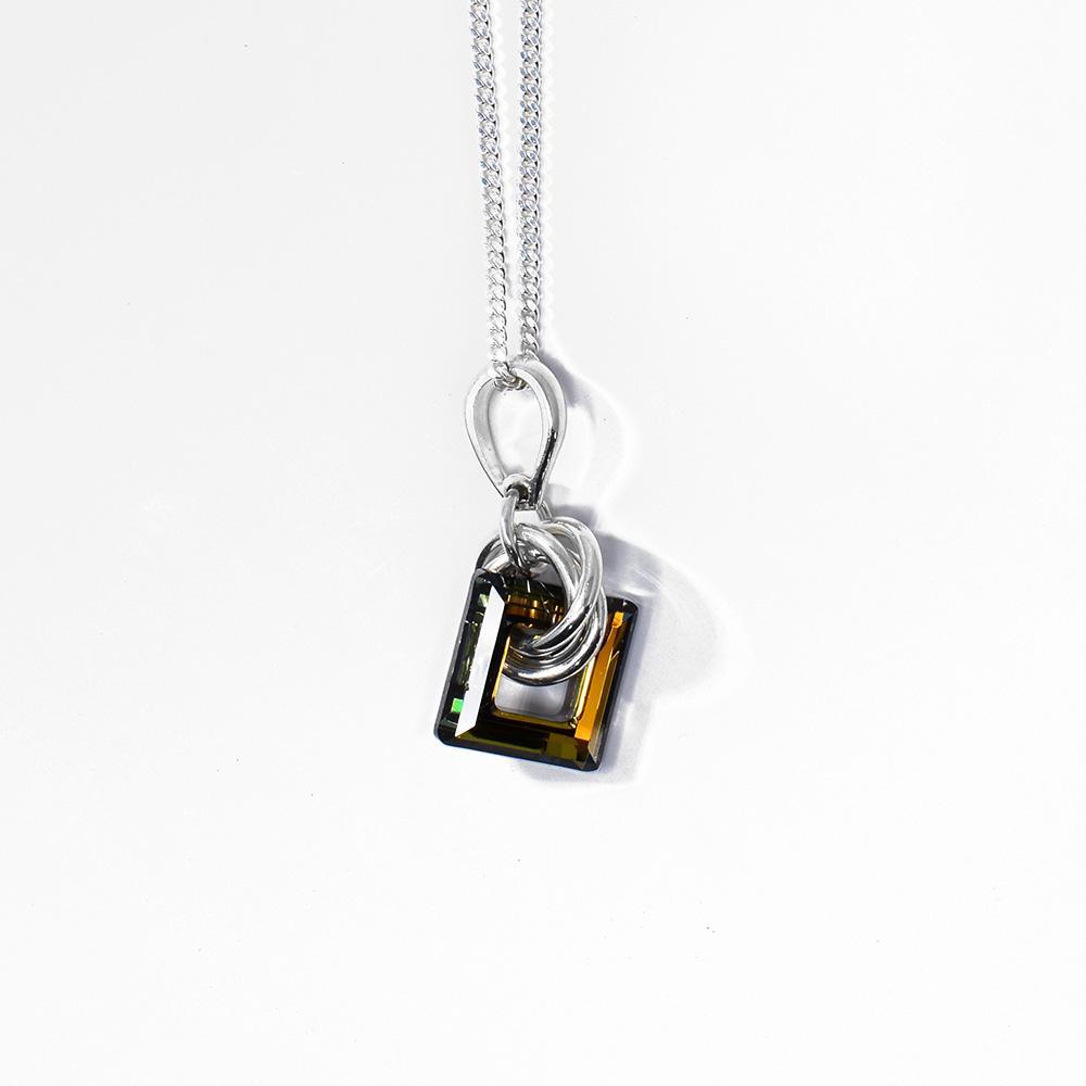 Sterling silver and Swarovski crystal. The slightly smaller sister of the Wow Medium Pendant. Crystal is 14 mm size. Exact match to the Wow Squared Small Earrings. The small bail will accommodate most sterling chains and several of Lisa's handmade necklaces to include the Solo, Small Twist, and Jen's Braid. Shown in the Bronze crystal colour. Price is for Pendant only. Necklace and pendants sold separately. Available in various crystal colours.
