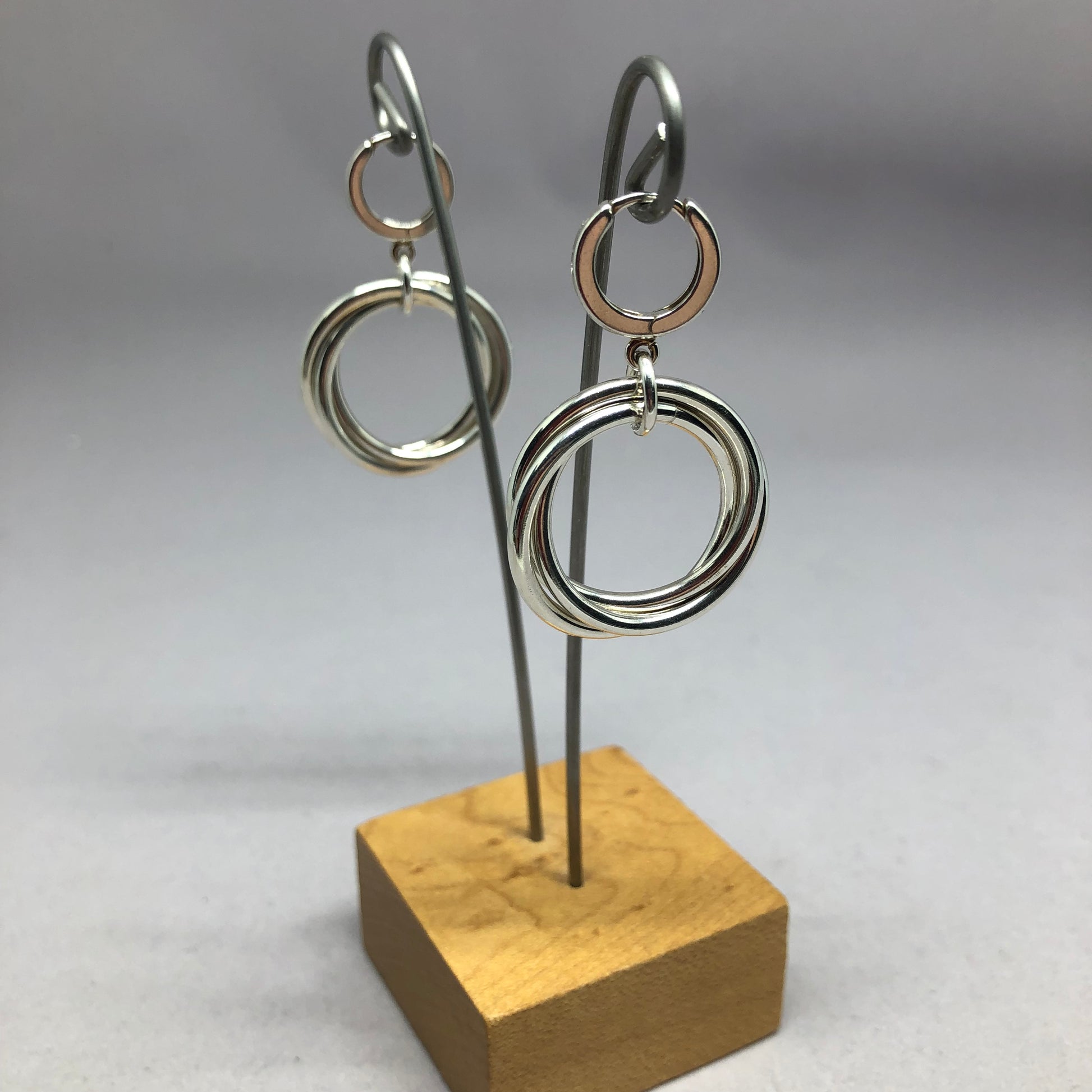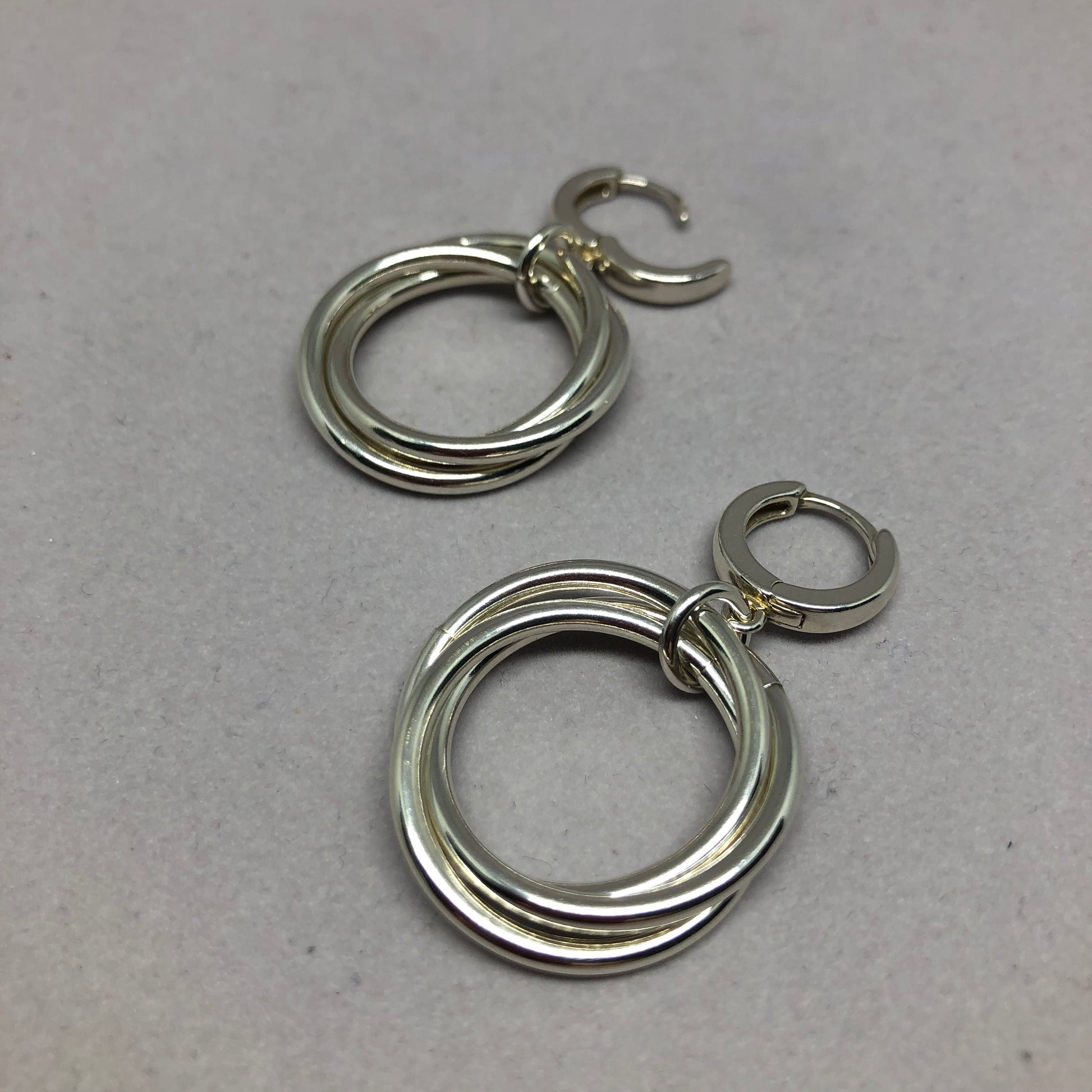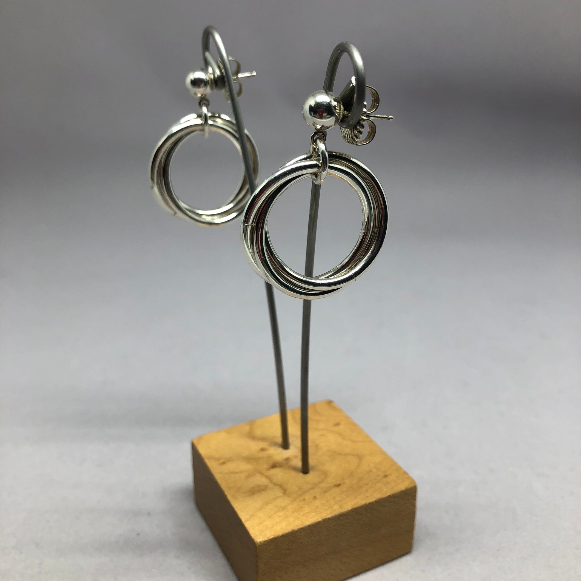 Sterling silver. Largest of the Love Knot series of earrings. These ones I decided to make them the opposite direction of the large Love Knot version. These are more like "hoops" because of the direction they hang, parallel to your head, not perpendicular. Available in Post, French Back and Huggies. The Post version is the shortest, coming in at about 1.25" long, French back is the longest, just over 1.5" and the huggie version is just 1.5" long. Each earring weighs approximately 7.3 grams each.